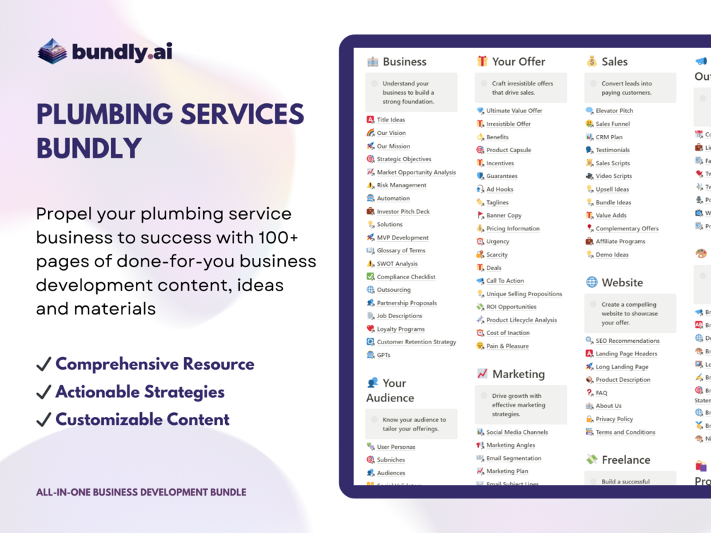 Invest in the Plumbing Services Bundly today and equip yourself with a treasure trove of business development resources.