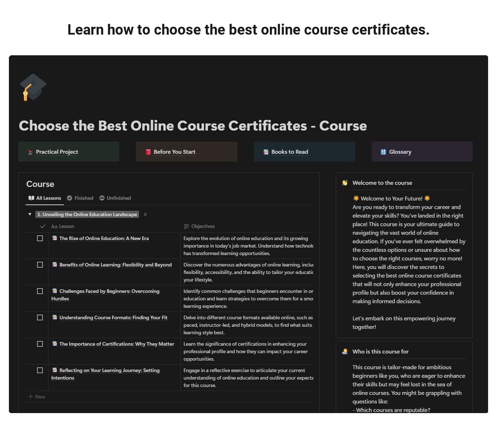 In this course, you'll explore various modules designed to guide you through the process of selecting valuable online course certificates.